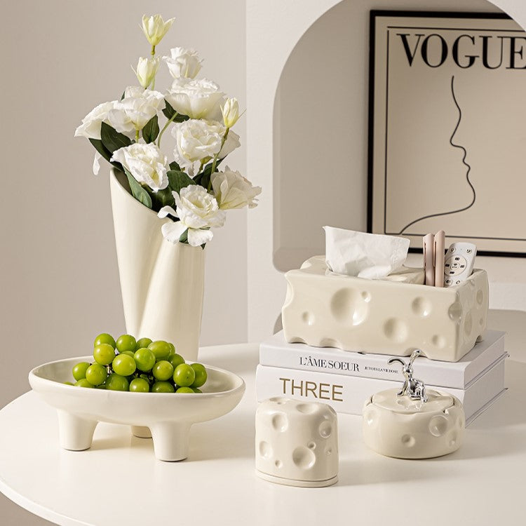 Cheese Style Luxury Ceramic Tissue Holder, Flowers Bouquet Vase, Living Room Organizer